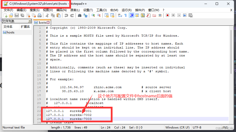 hostname: eureka-7003 #映射主机名,当前没用到它