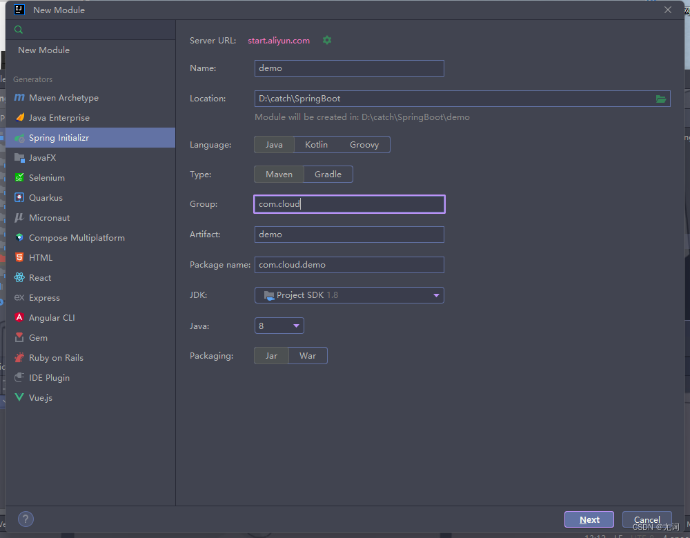 项目就这么创建,其它啥也不用动,把自动生成的配置文件后缀名改为yml,将以下内容复