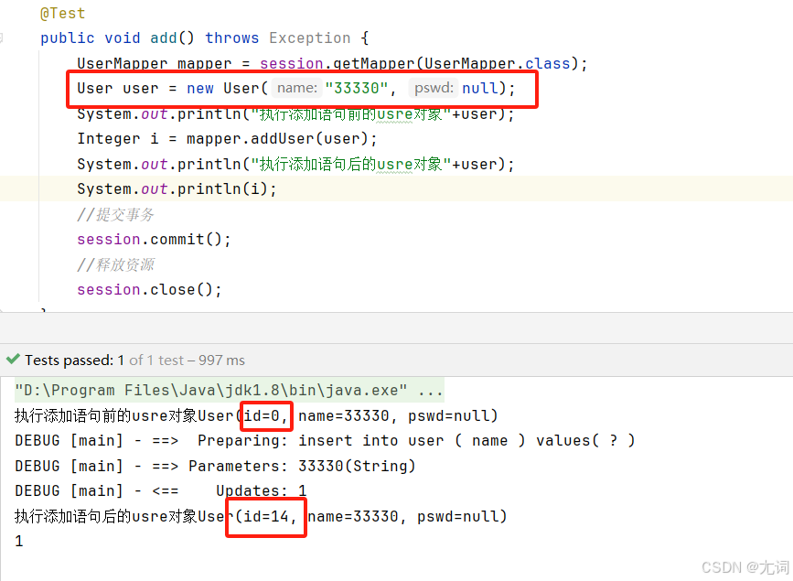 Integer i = mapper.addUser(user);