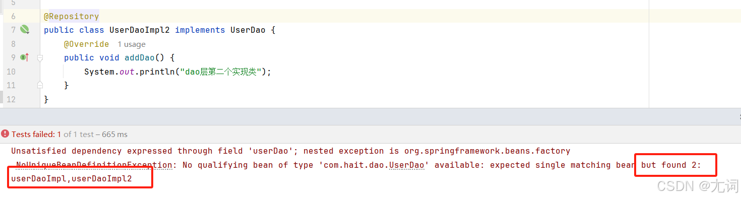 若dao层有两个实现类,那么仅仅使用Autowired注解就会报错