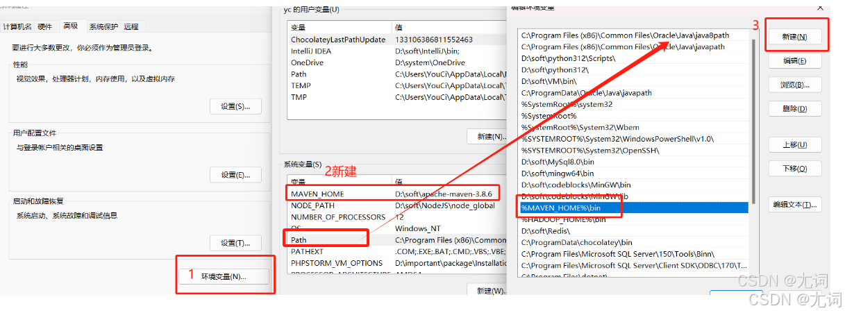 按如下图配置maven系统环境变量,目录请按照自己的写,变量名需要和我的一致,然后验证
