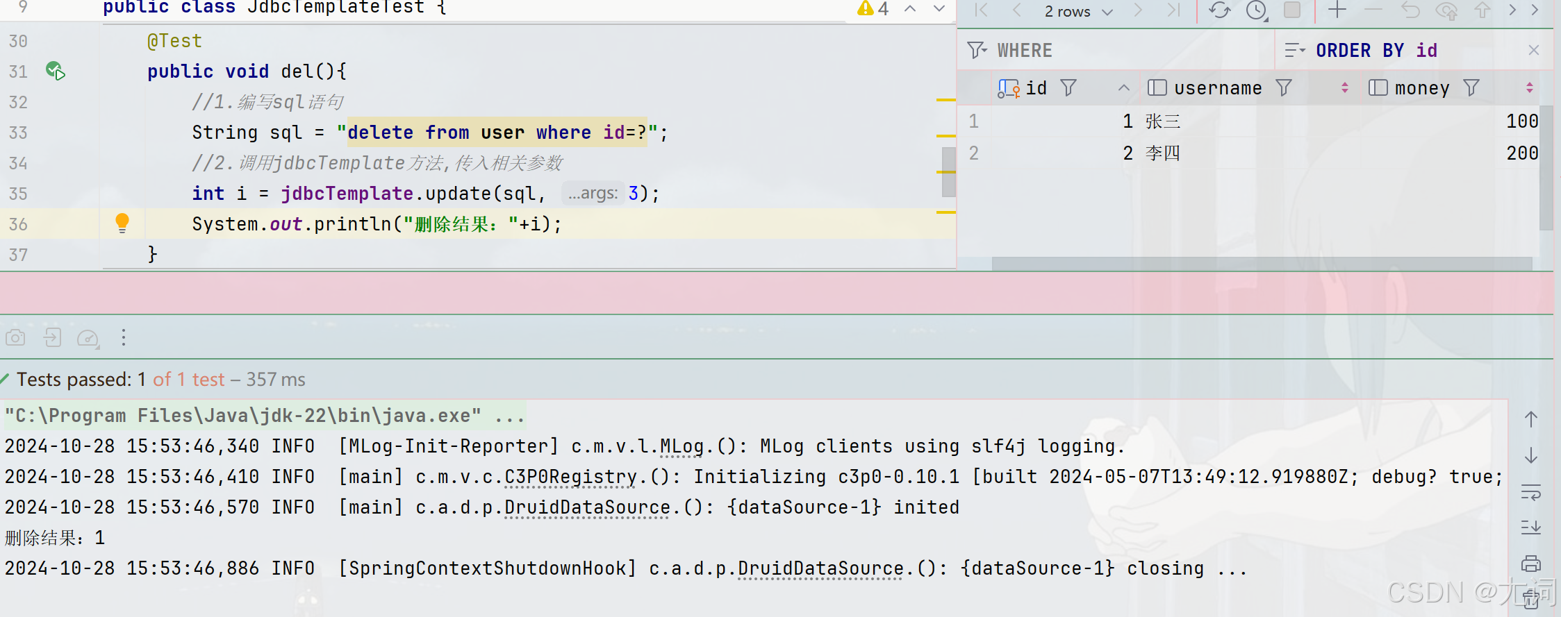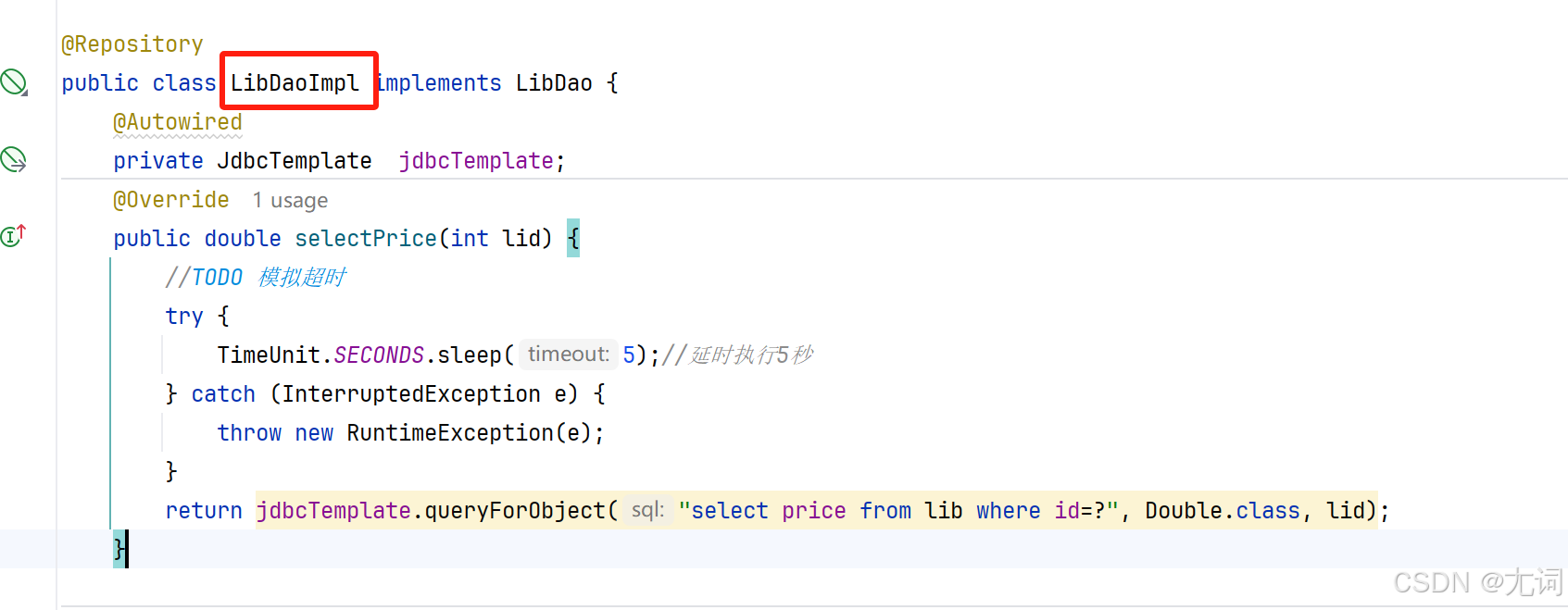 jdbcTemplate.update("update user set money=money-? where id=?",price,uid);