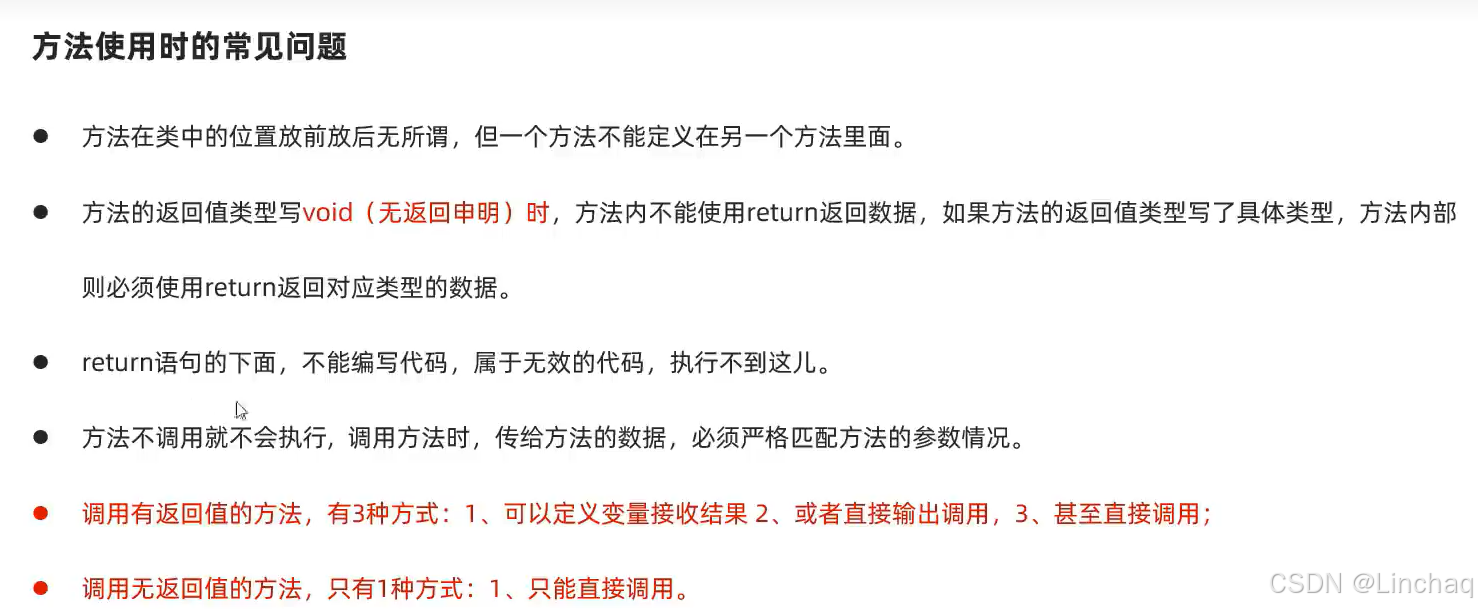 PS:方法如果没有返回值,返回值类型处必须写:void