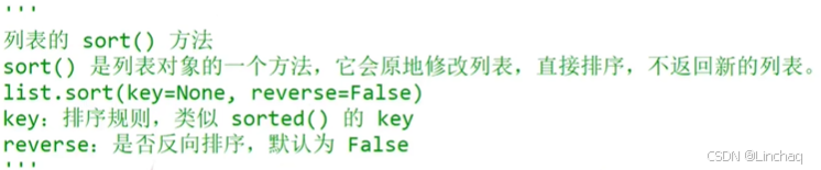 (2)列表的sort方法:不会产生一个新的返回值!
