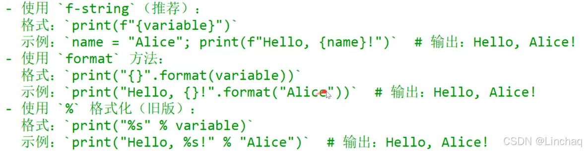 (3)格式化输出:推荐用f-string
