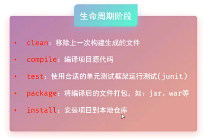 (3)生命周期:为了对所有的maven项目构建过程进行抽象和统一