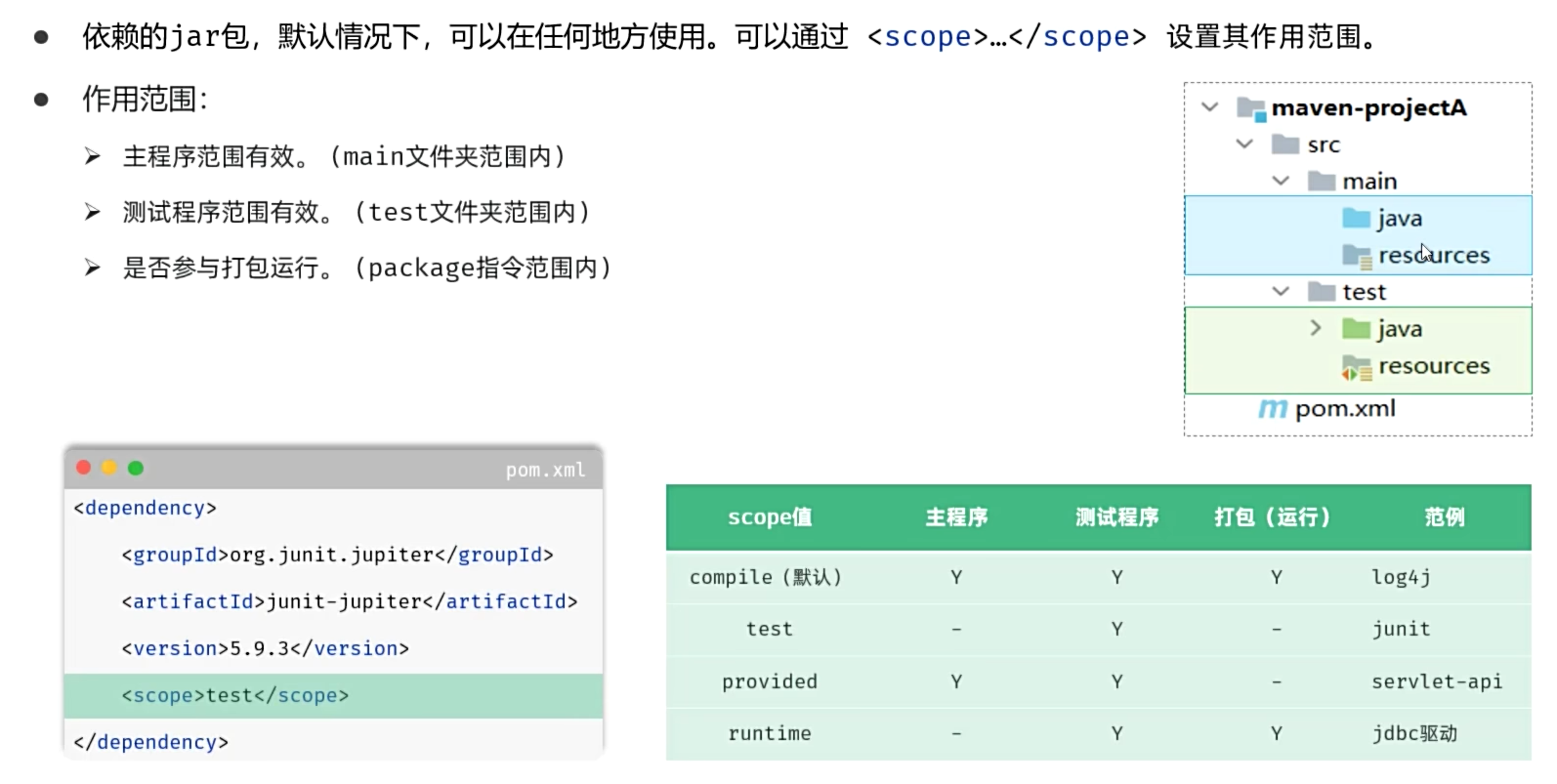 (4)maven依赖范围:默认是compile