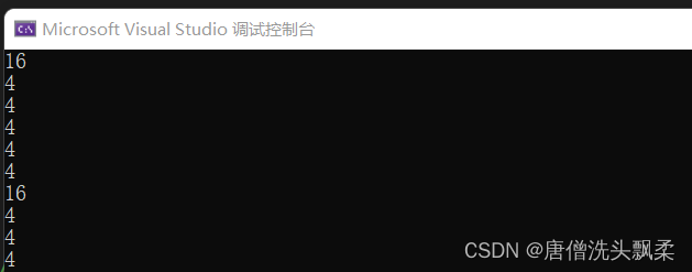 printf("%d\n", sizeof(*&a));//16 解引用可以访问的大小,*这里访问的是数组:int [4];==sizeof(a)先取后解;