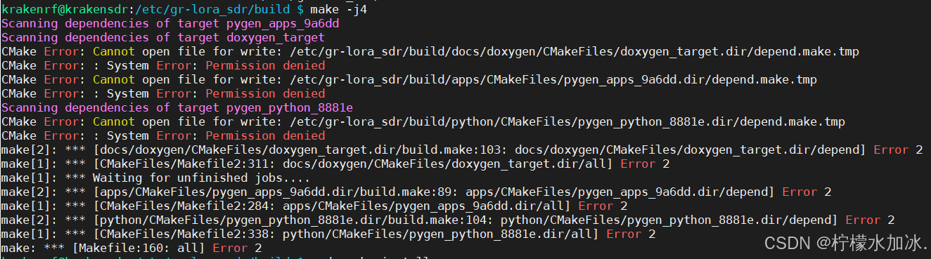 其中make中可能会报错,个人采用的是忽略make -j4直接sudo make install,最后的结果是一个过滤器模块无法使用,无伤大雅,不影响lora总体功能。