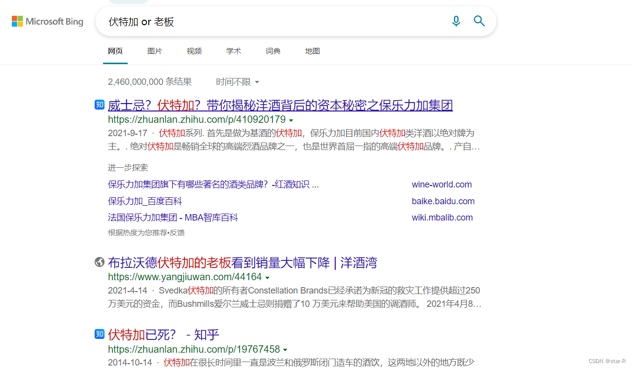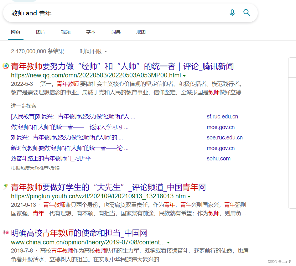 - 逻辑或(A or B或者A+B):搜索引擎搜索所有含有关键词A和B的结果,只要含有A和B就可以;