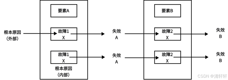 级联失效:是指同一个相关项中,一个要素的失效导致引起另外一个或多个要素失效。