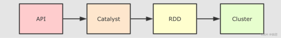 SparkSQL会对写完的代码,执行“自动优化”,既Catalyst优化器,以提升代码运行效率,避免开发者水平影响到代码执行效率。 (RDD代码不会,是因为RDD的数据对象太过复杂,无法被针对性的优化)