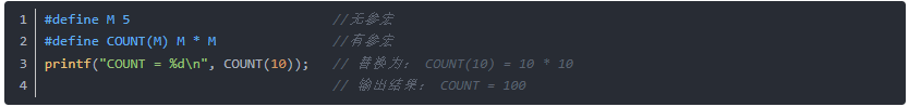 对象宏: 不带参数的宏被称为"对象宏(objectlike macro)"。对象宏多用于定义常量、通用标识。例如: