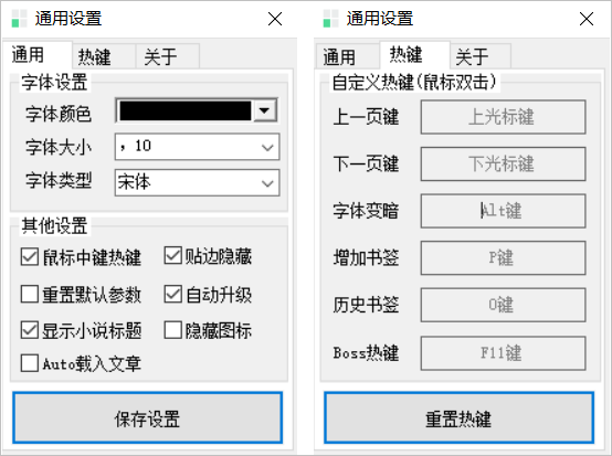 - 支持自定义字体、颜色、背景色、自动翻页、鼠标滚动翻页等