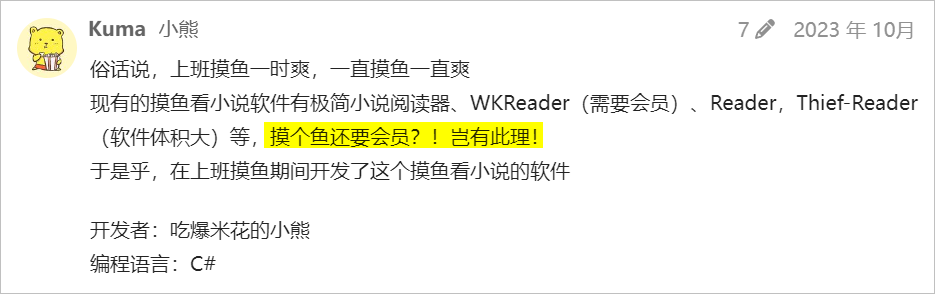 据说开发者是因为不满其他摸鱼软件还要收费而开发