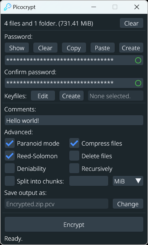介绍:Picocrypt 是一款小巧高效的文件加密工具,专为保护个人隐私和敏感数据而设计,特别适合在工作单位或公共场所防止文件被他人偷看。它支持自定义密码,用户可完全掌控加密权限,同时具备一键压缩与加密功能,操作简单、集成度高。无论是日常隐私文件管理,还是跨设备数据传输,Picocrypt 都能提供强大、安全、便捷的加密体验,是你守护数据安全的不二之选。