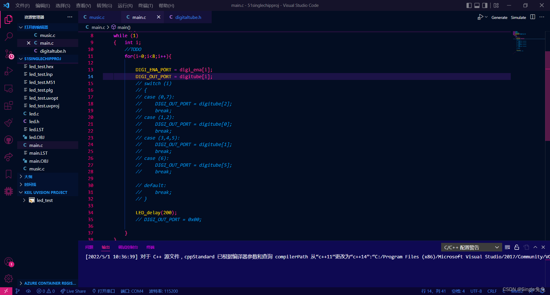 这篇博客探讨了在C语言编程中遇到的一个数码管显示异常问题。作者在使用Keil编译器时,发现数码管的某些输出未更新,起初尝试合并相同的输出条件,但导致了错误。经过调试,作者发现这可能是由于Keil的编译特性导致的。为了解决这个问题,作者选择将每个数码管显示情况分开编写,从而确保了正常输出。博客邀请对这一现象有深入理解的读者在评论区分享见解。