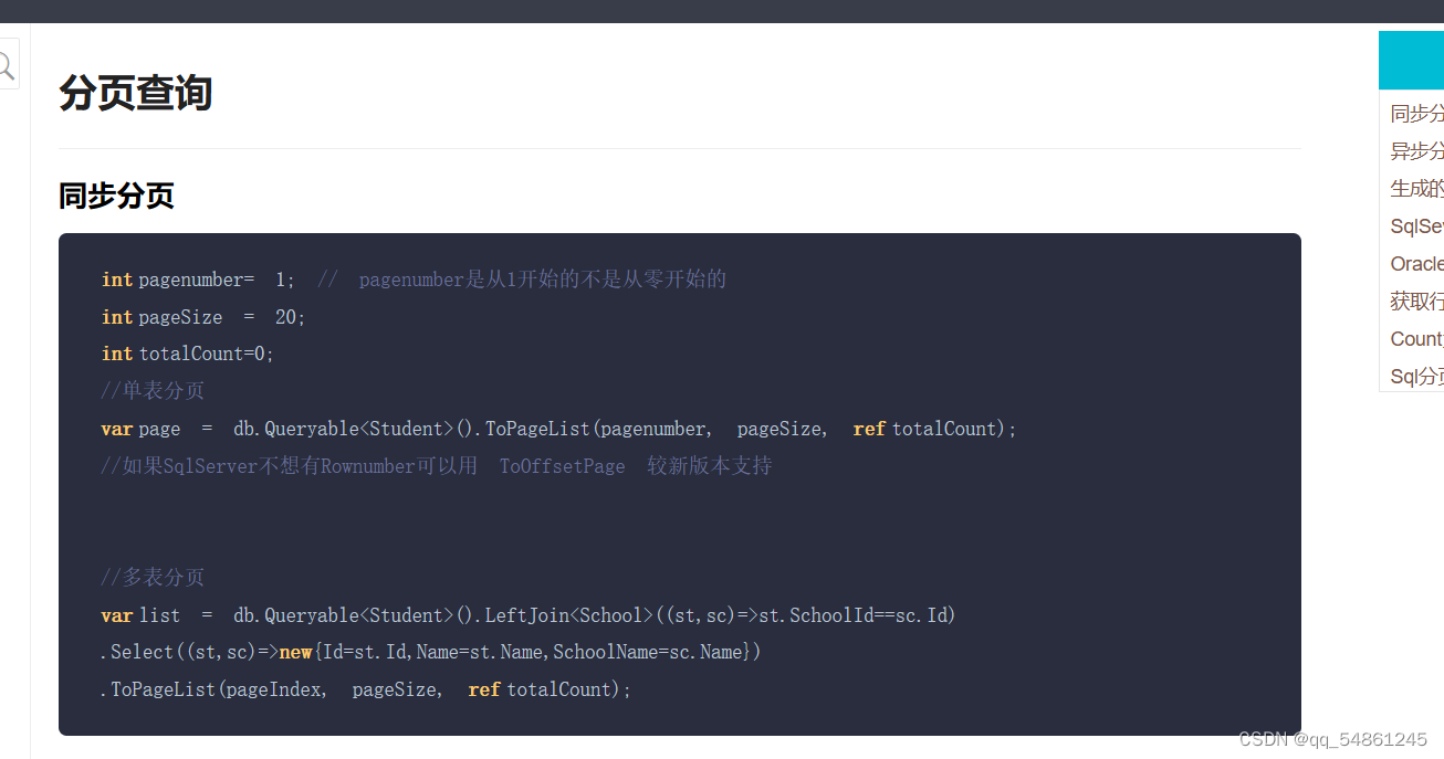 sqlsugar里提供了简易的分页查询,咱们来试一下