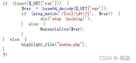 用get方法传入一个var变量,然后将传进来的var进行base64解码然后一个正则判断