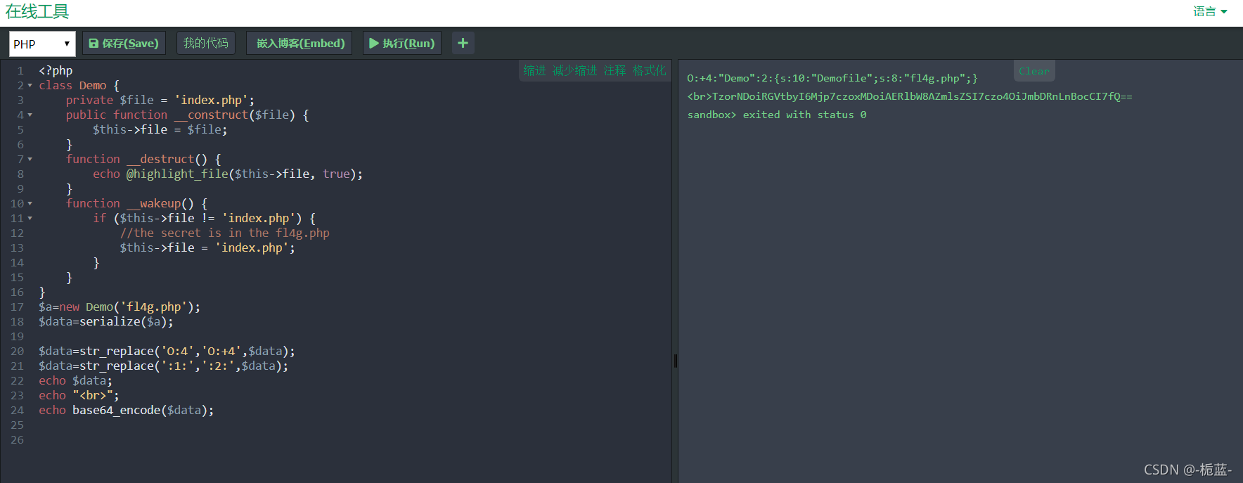 得知在php函数里O:4是等效O:+4的,我们可以直接str_replace来替换(不要像我一样思考-4是不是等效的!!怎么会有字符数量是-4的呢!!)