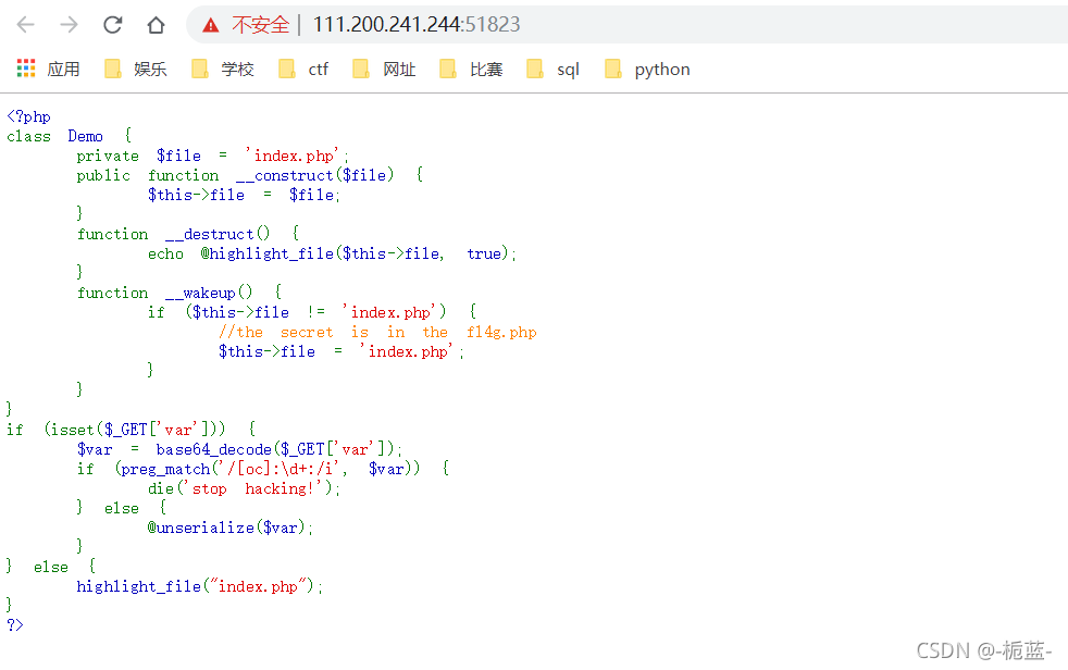 TzorNDoiRGVtbyI6Mjp7czoxMDoiAERlbW8AZmlsZSI7czo4OiJmbDRnLnBocCI7fQ==直接get方法传入var即可得到flag