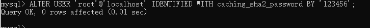 ALTER USER 'root'@'localhost' IDENTIFIED WITH caching_sha2_password BY '123456';