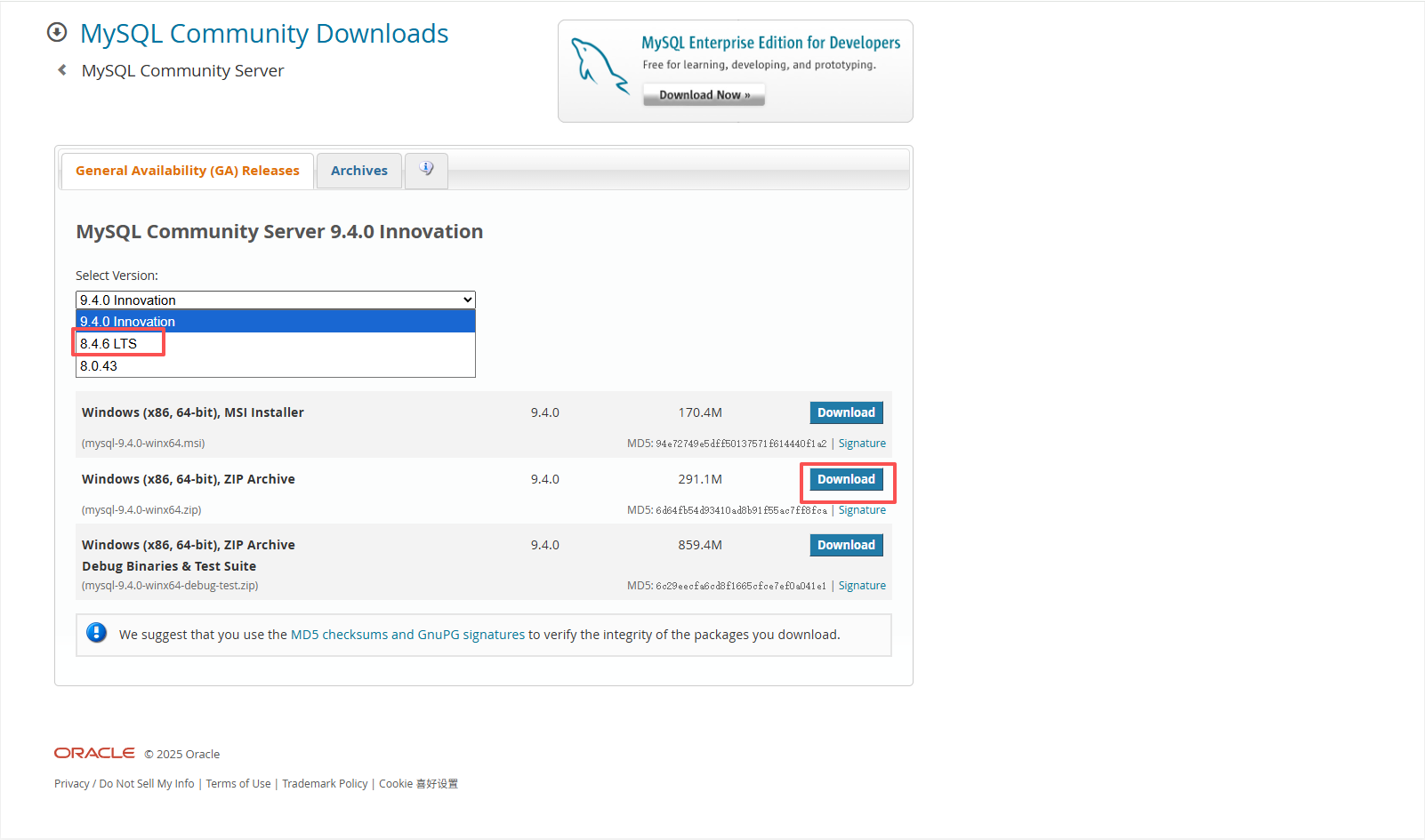 选择 8.4.0 LTS 版本,选择下载 zip 压缩包。