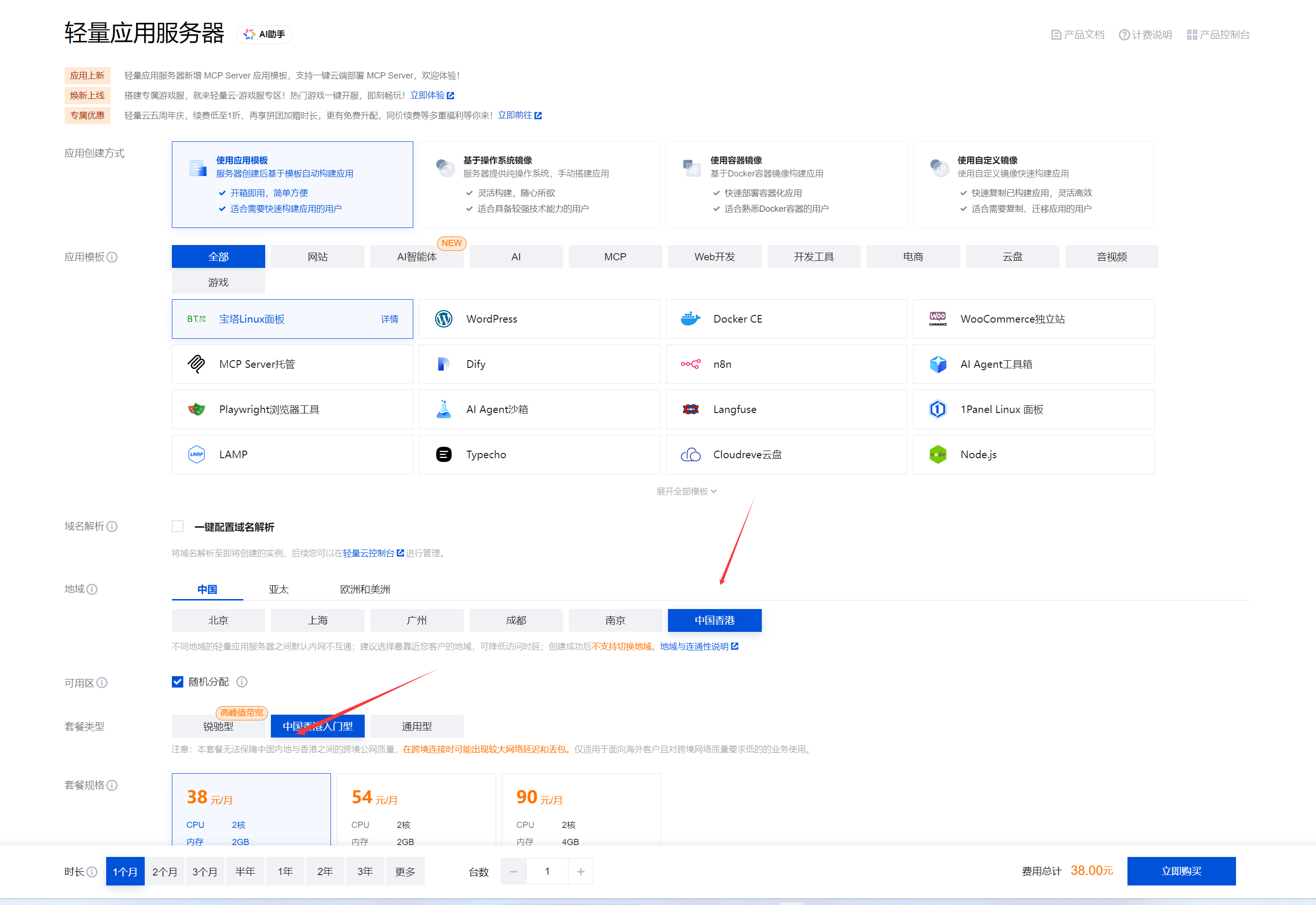 选择宝塔面板,这里以香港服务器作为演示,你们可以买特惠(68一年)