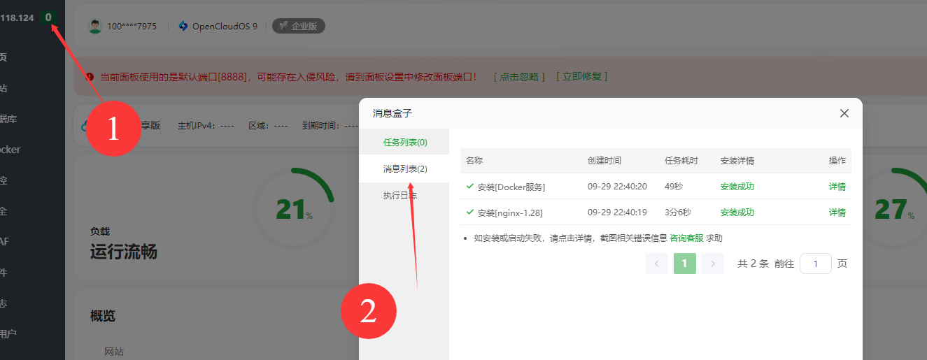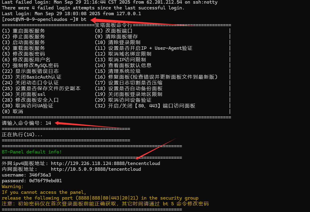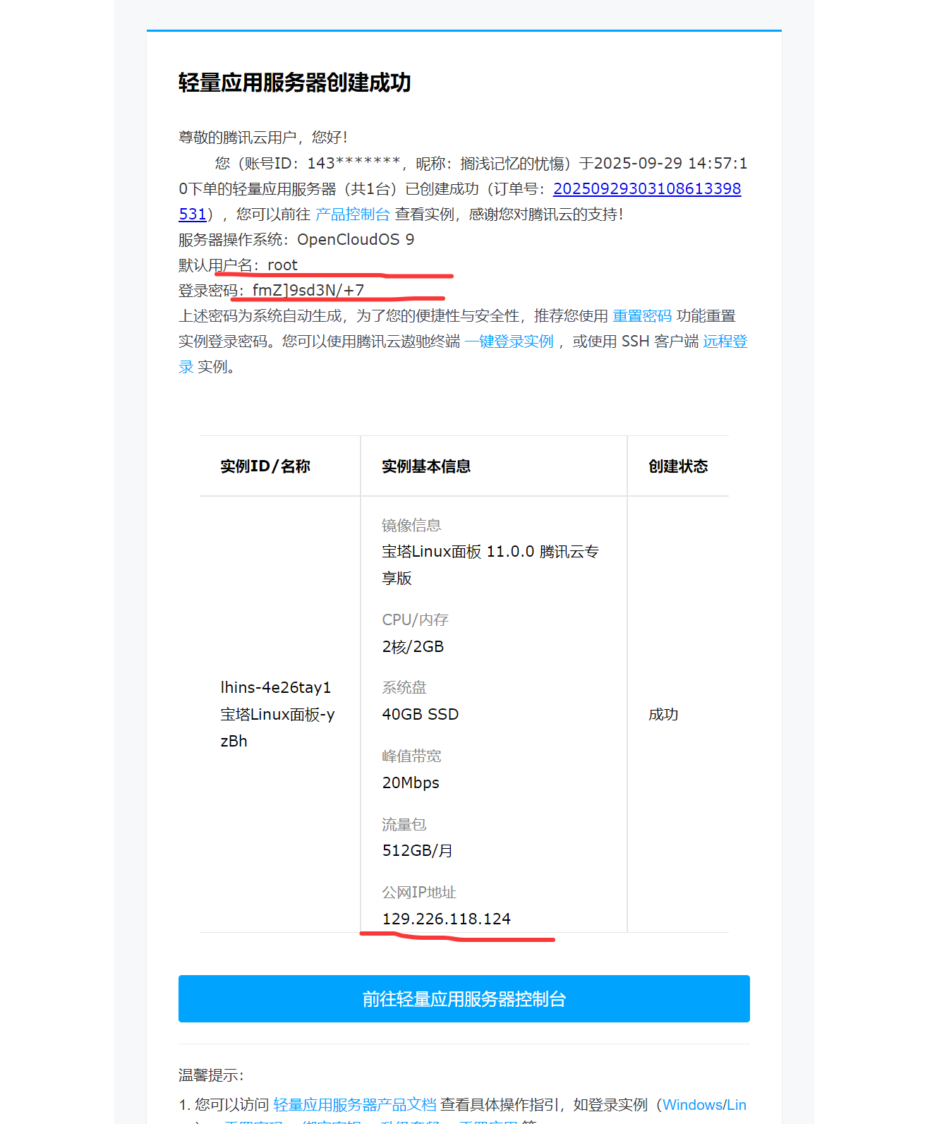 小贴士:面板与系统账号密码务必及时修改为强密码,并妥善保存。