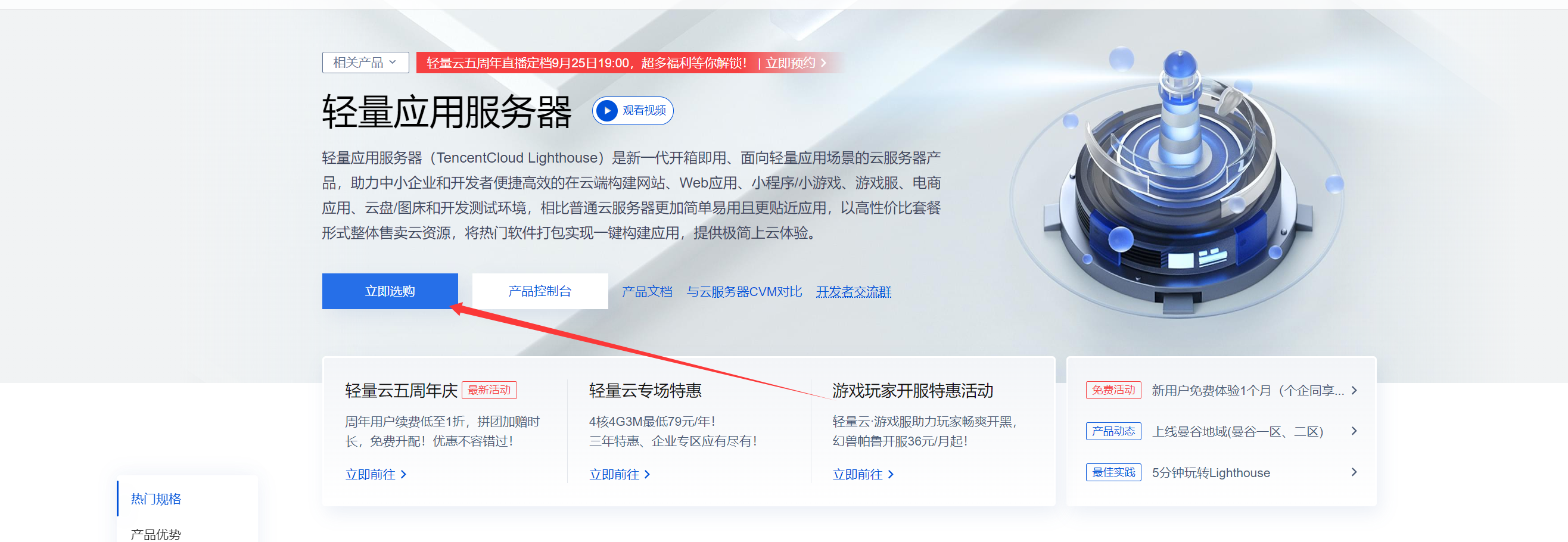 以 腾讯云(香港地域)+ 宝塔面板 为例(可选特惠机型)。