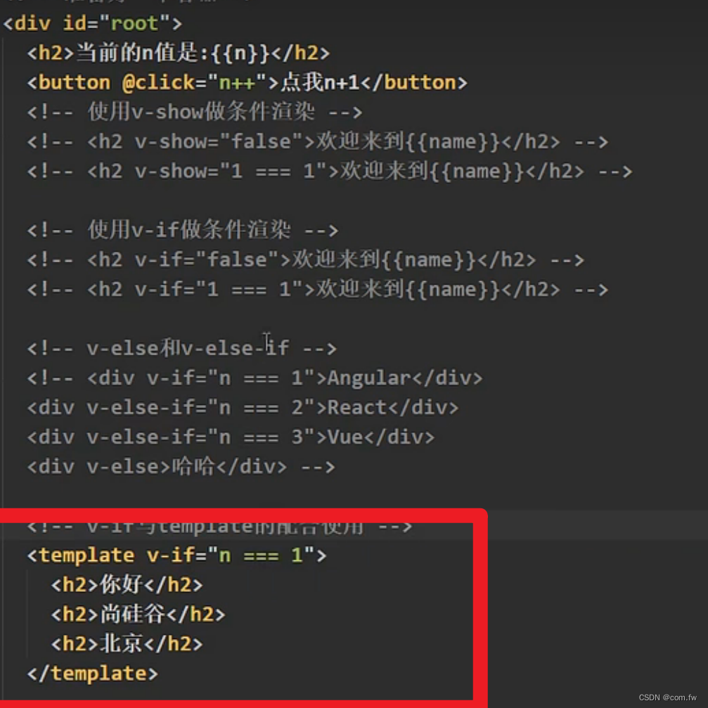 v-if和v-show都可以进行条件渲染,但是template只能和v-if配合使用
