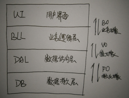 在传统的 C/S 架构下应用程序(例如,Windows下的客户端应用程序),一般都是一台中央数据库服务器( DB ),然后对应N台客户端(DAL-BLL-UI )。