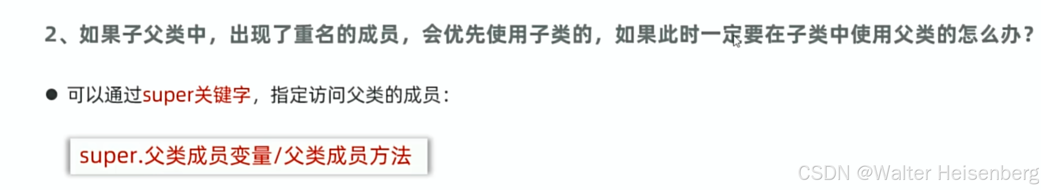 因为子类对象是由子类和父类共同创建的,所以在子类对象中可以通过super找到父类成员/方法