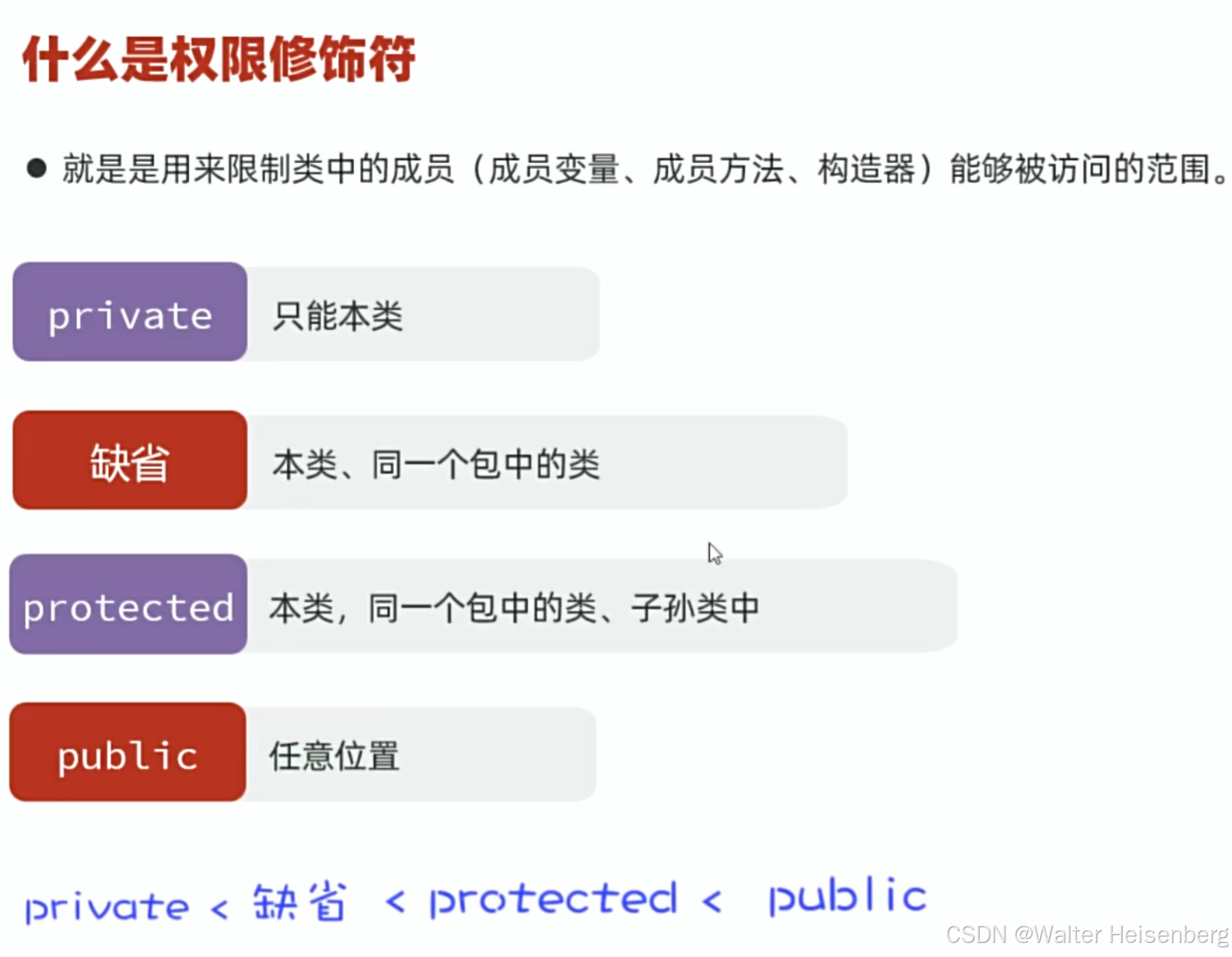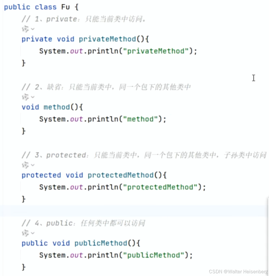 一般情况下:成员变量私有(private),方法公开(public),其他两个视情况而定