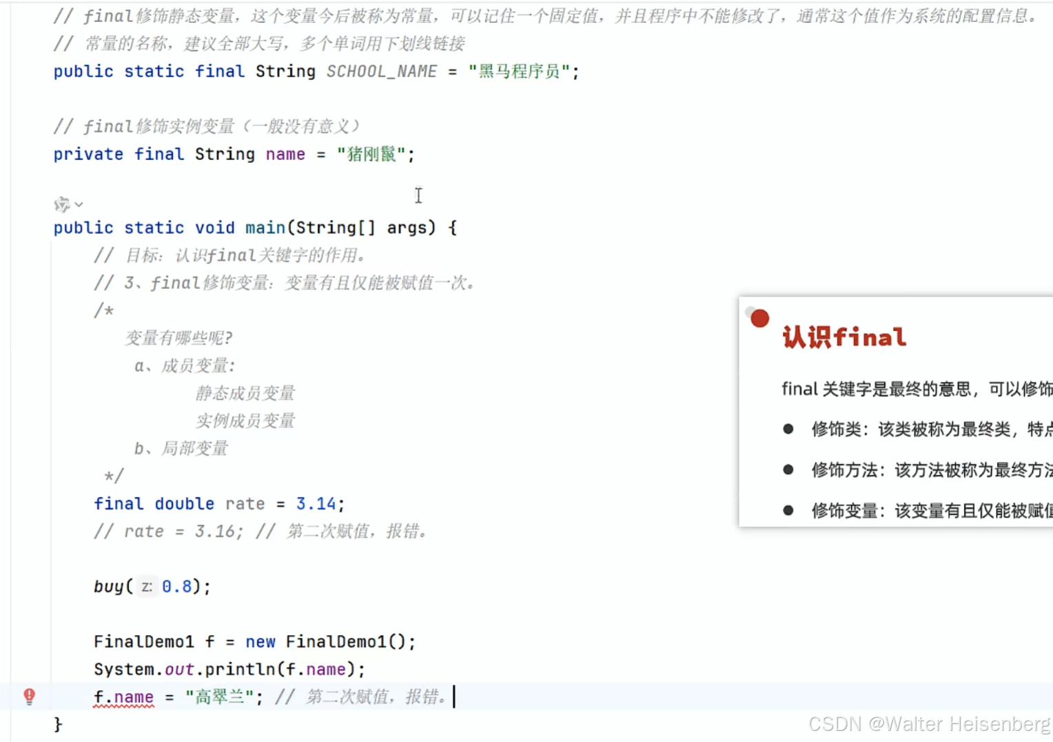 final修饰变量的时候必须要当场赋值