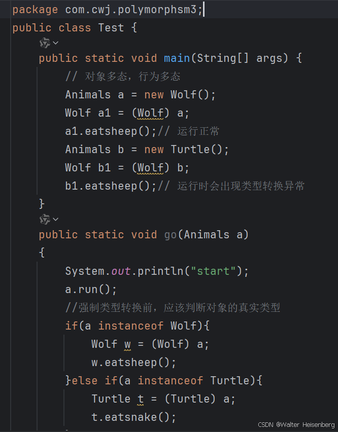 解决“多态下不能使用子类独有功能”方法:强制类型转换