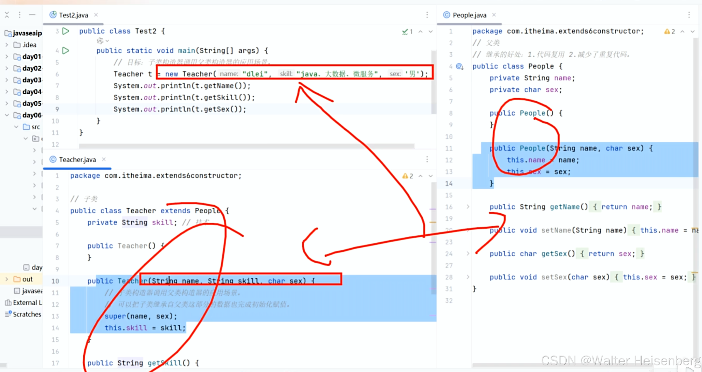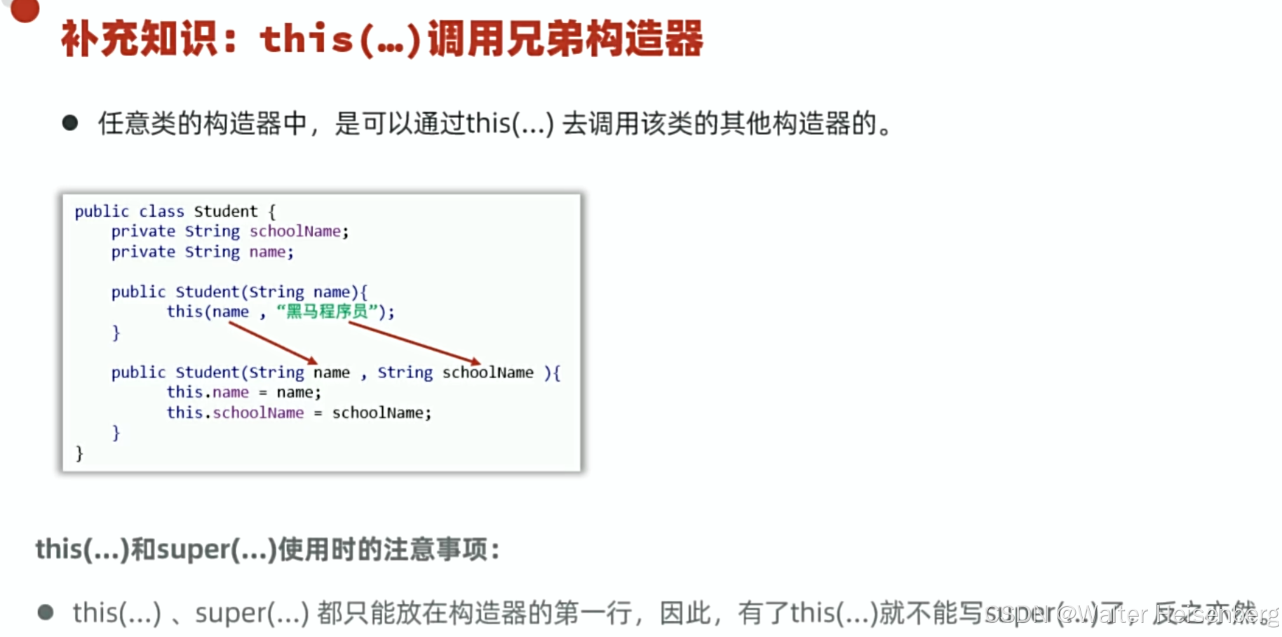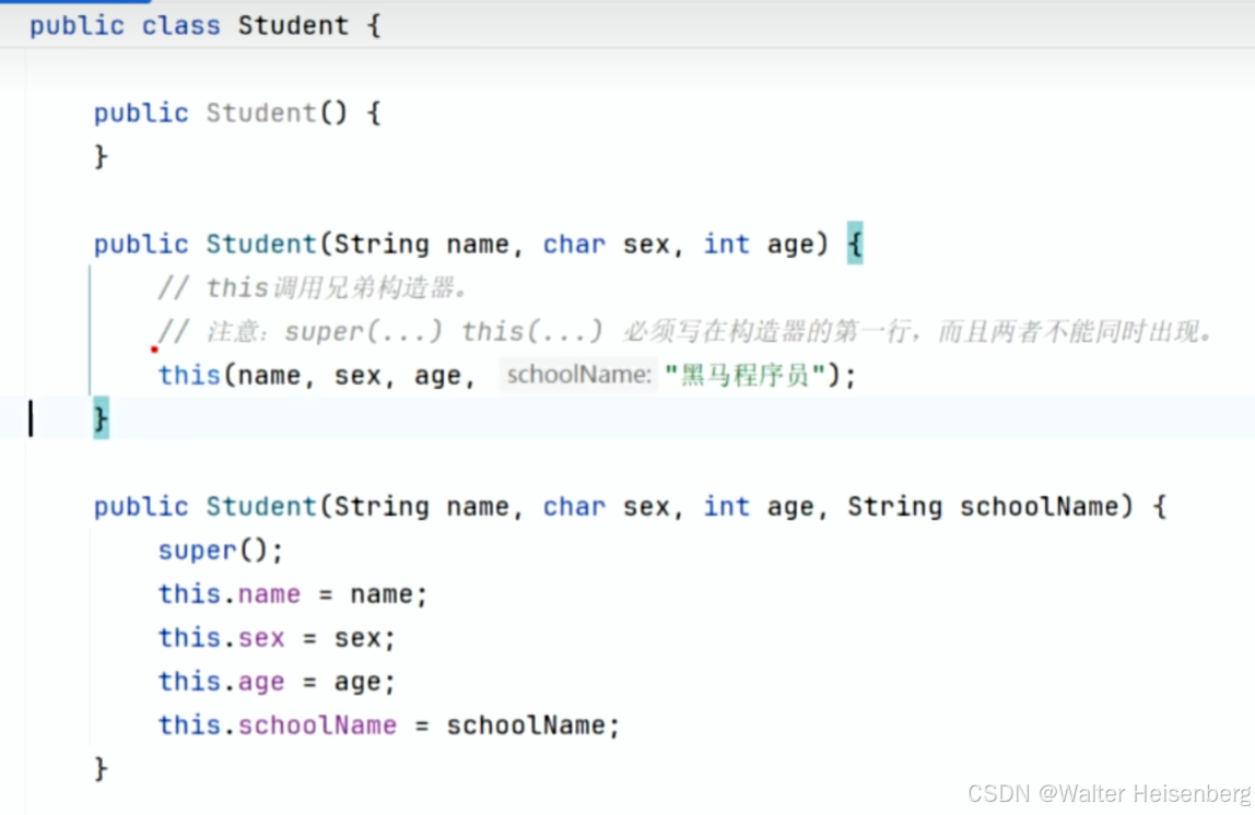 使用兄弟构造器可以减少代码重复性(this(...)执行相似的构造器之间的调用)