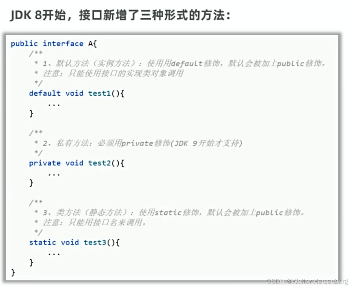 JDK8以后,接口新增了三种方法
