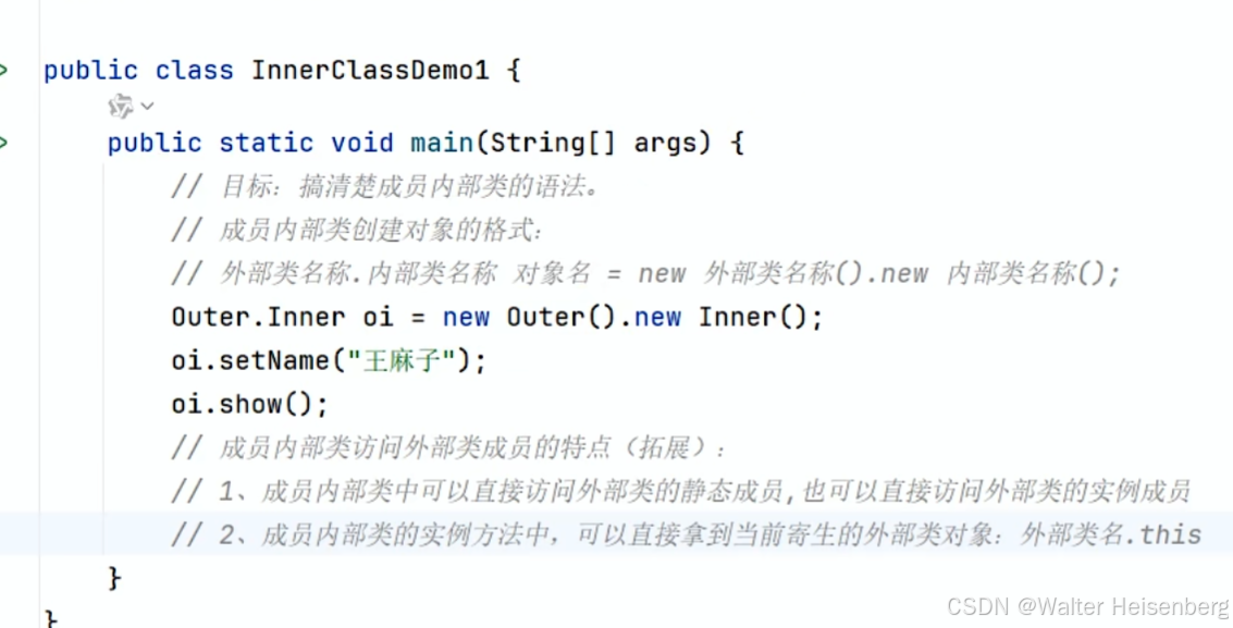 属于外部类对象持有的(无static)