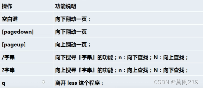 12、less指令:用来分屏查看文件内容,它的功能与more指令类似,但比more指令更加强大,支持各种显示终端。less指令在显示文件内容时,并不是一次将整个文件加载之后才显示,而是根据显示需要加载内容,对于显示大型文件具有较高的效率。