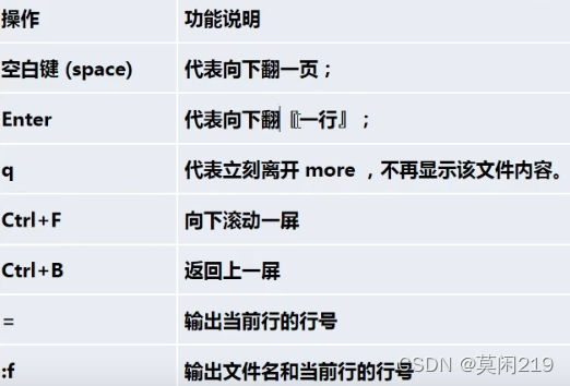11、more指令:more指令是一个基于vi编辑器的文本过滤器,它以全屏幕的方式按页面显示文本文件的内容。more指令中内置了若干快捷键(交互的指令)