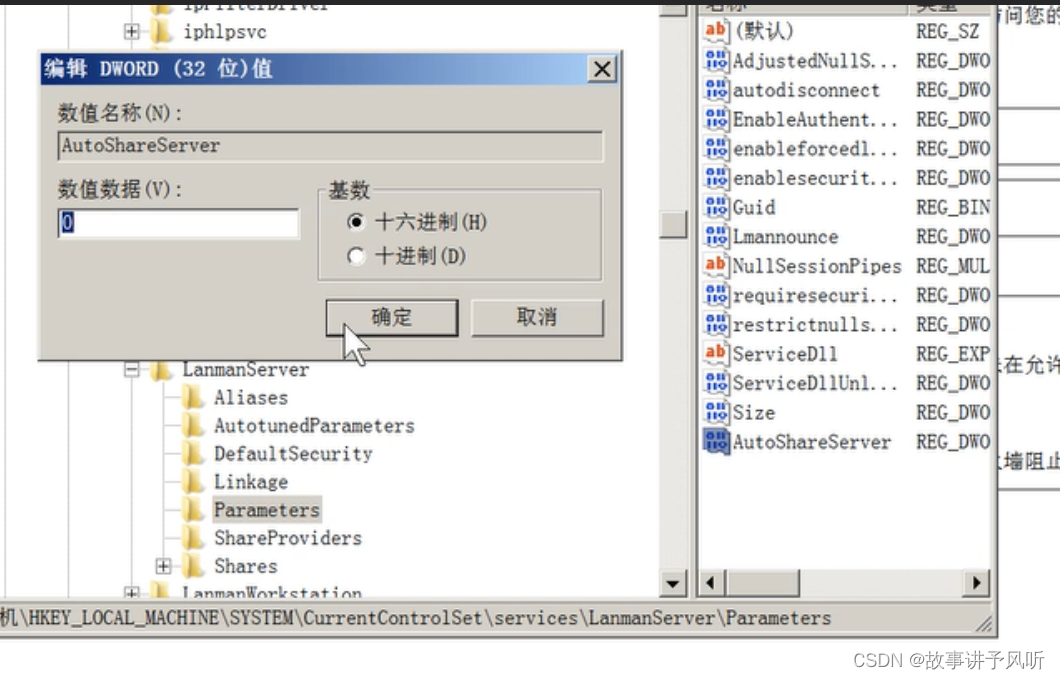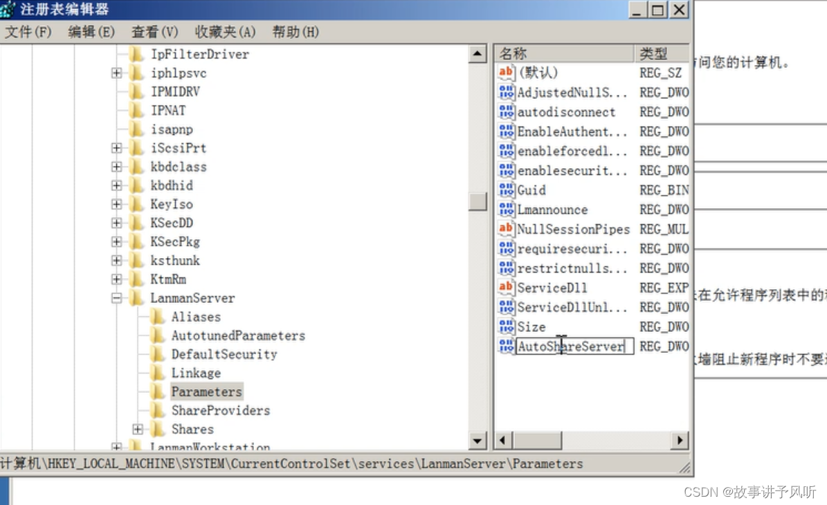 \HKEY_LOCAL_MACHINE\SYSTEM\CurrentControlSet\Services\LanmanServer\Parameters