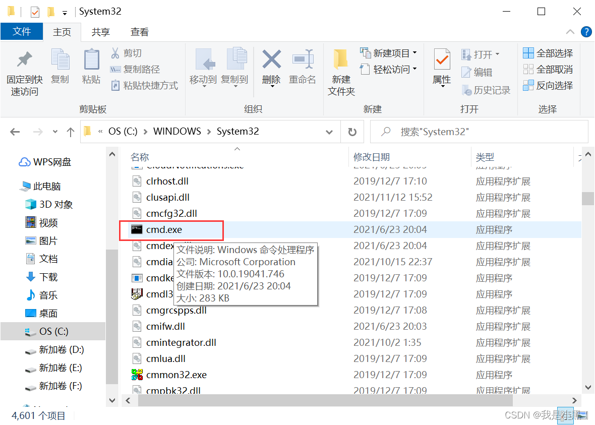 我们从上图可以看到,果然,我们的cmd.exe就在里面,所以这也就是为什么我们在我们的运行菜单里面直接输入cmd回车就可以直接使用该程序,而不用繁琐的去路径里面找到cmd.exe才能使用的原因。