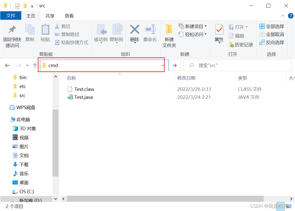 在java文件所在目录下输入cmd,然后回车即可在该路径下打开cmd