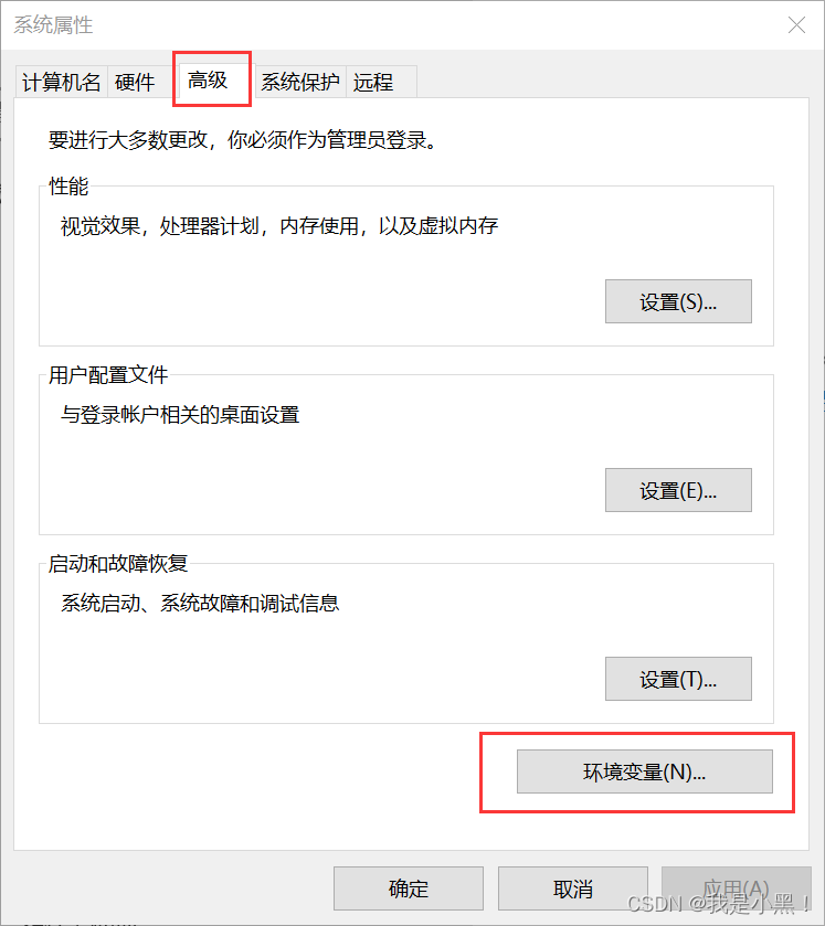 首先需要进入高级系统变量---->高级---->环境变量(在上文如何查看修改环境变量中有提到)