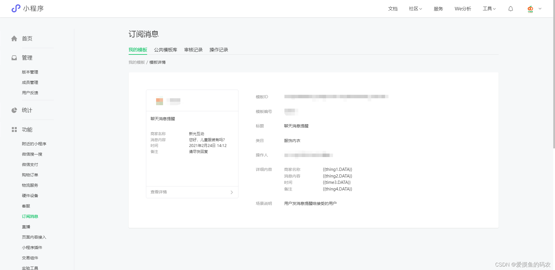 //模板内容,格式形如 { "key1": { "value": any }, "key2": { "value": any } }