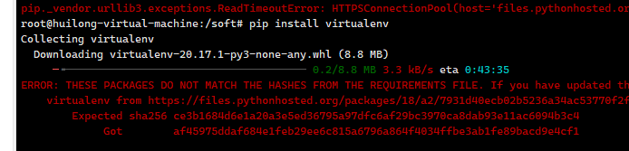 在尝试使用pip安装virtualenv时遇到了网络超时的问题,通过设置代理至豆瓣(pypi.douban.com)的简单镜像成功完成了下载。这种方法对于遇到类似问题的用户可能是一个有效的解决方案。