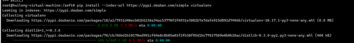 pip install --index-url https://pypi.douban.com/simple virtualenv