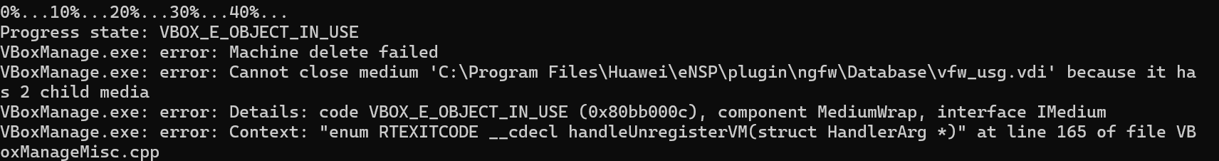 有时 eNSP 创建的临时虚拟机(Clone)仍绑定原 vfw_usg.vdi,