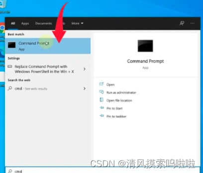 5.要检查JDK是否安装正确,请按Windows按钮打开命令提示符,键入“ cmd ”并按Enter。